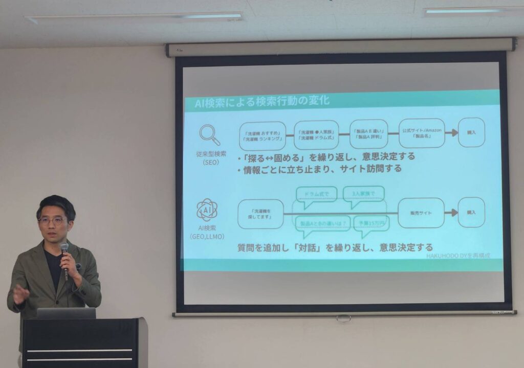 その中では、「紙媒体」「検索」「SNS」「その他」の方向から来る。ということを図で示していただいていました。